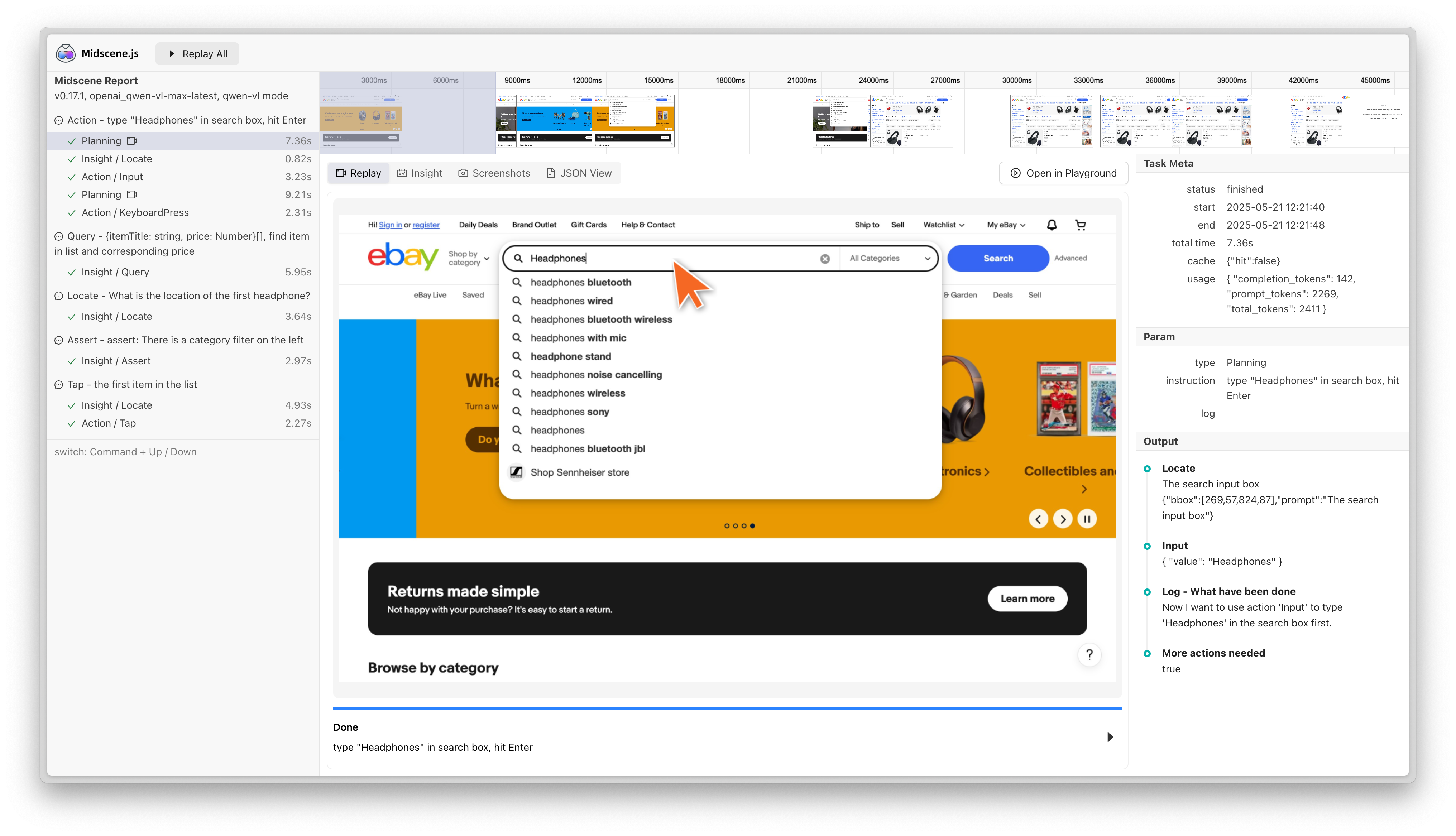 如果缓存未命中,Midscene 将会重新调用 AI 模型,并更新缓存文件。